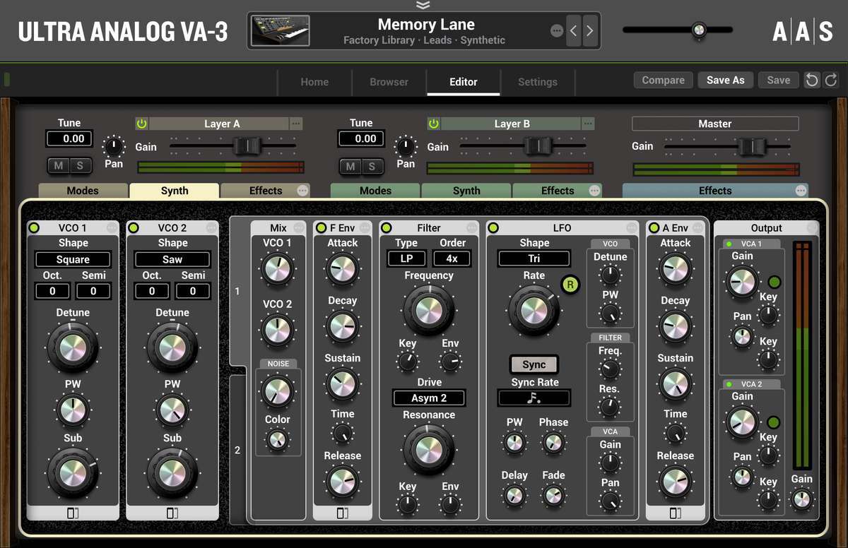 Ultra Analog VA-3 — это двухголосный аналоговый синтезатор с двумя генераторами, двумя фильтрами, встроенными эффектами и расширенными возможностями редактирования, который обеспечивает идеальный баланс между привычностью и гибкостью.