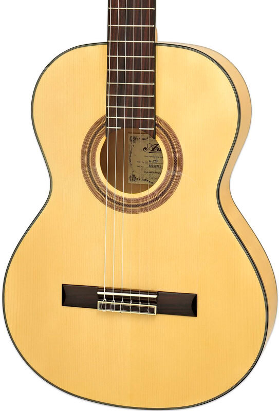 ARIA A-20 F — это полноразмерная шестиструнная гитара для фламенко, отличающаяся доступной ценой и качественными материалами. Верхняя дека изготовлена из цельной ели, нижняя дека и обечайка — из липы. Гриф выполнен из нато и имеет накладку из палисандра. Ширина верхнего порожка составляет стандартные для классических гитар 52 мм. Инструмент оснащен надежной позолоченной колковой механикой.