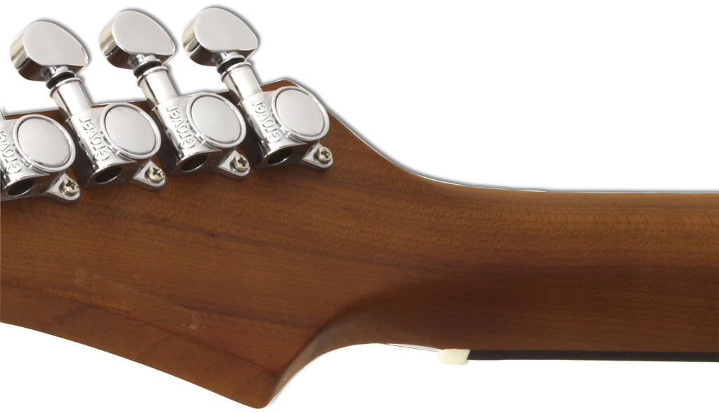 - Гриф – из 3-х кусков клена с болтовым креплением с накладкой из Techwood (технологически обработанная древесина)