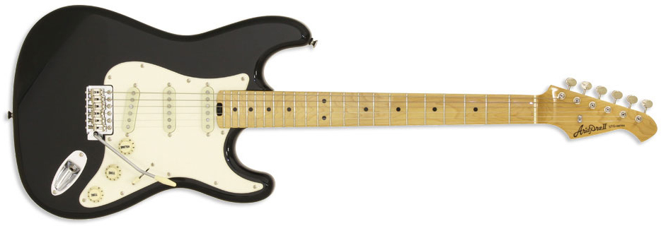 ARIA STG-57 BK - электрогитара, 22 лада . Корпус: ольха. Гриф: клен (винтовое крепление к корпусу) . Накладка грифа: клен. Звукосниматели: Single Coil Alnico V x 3. Регуляторы: 1V 2T. Цвет: черный.