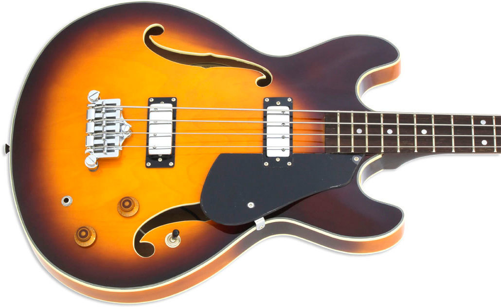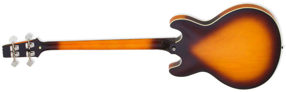 ARIA TAB-CLASSIC - 4-х струнная бас-гитара, серии Hollow Body, созданная на основе классической ES конструкции. Данная модель характеризуется полностью полым корпусом с двумя вырезами, сделанным из клена (задняя дека, обечайки, топ), мензурой - 860 мм, грифом из 3-х слоёв клена (вклеенный), 20-ю ладами и инкрустациями в виде точек, фирменной электроникой Aria, хромированной фурнитурой и винтажными колками.