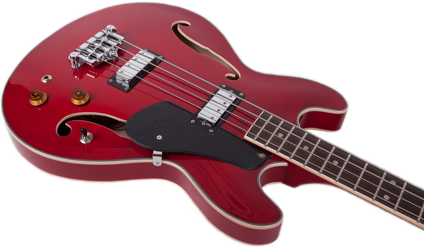 ARIA TAB-CLASSIC - 4-х струнная бас-гитара, серии Hollow Body, созданная на основе классической ES конструкции. Данная модель характеризуется полностью полым корпусом с двумя вырезами, сделанным из клена (задняя дека, обечайки, топ), мензурой - 860 мм, грифом из 3-х слоёв клена (вклеенный), 20-ю ладами и инкрустациями в виде точек, фирменной электроникой Aria, хромированной фурнитурой и винтажными колками.