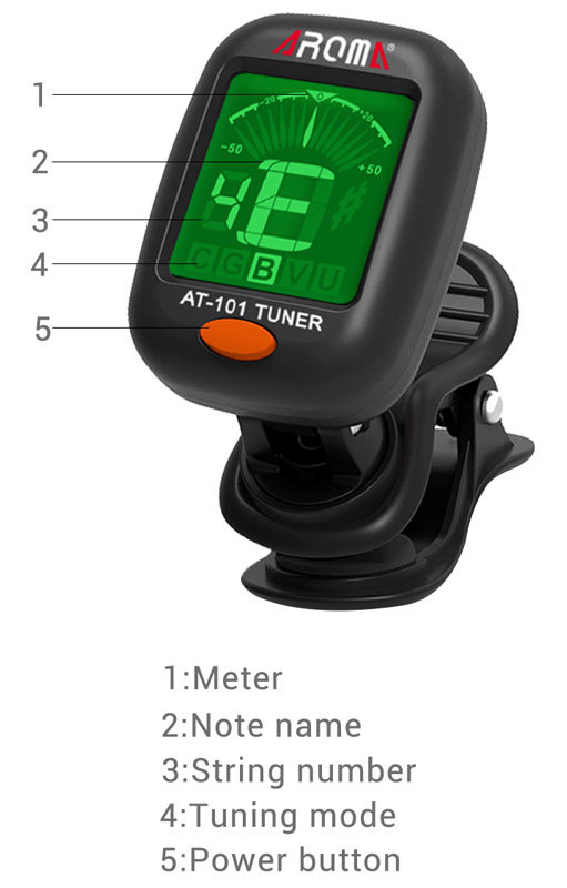 Aroma AT-101 - тюнер для гитары, баса, укулеле, скрипки