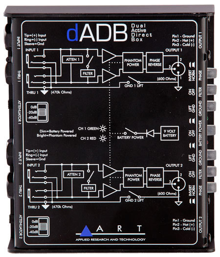 Двухканальный активный директ-бокс, аттеньюаторы позволяют подключать к балансным TRS Jack входам источники с любым уровнем сигнала, активная электроника с низким уровнем шумов, балансные XLR выходы