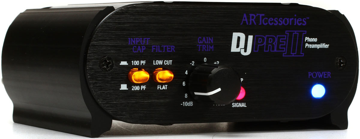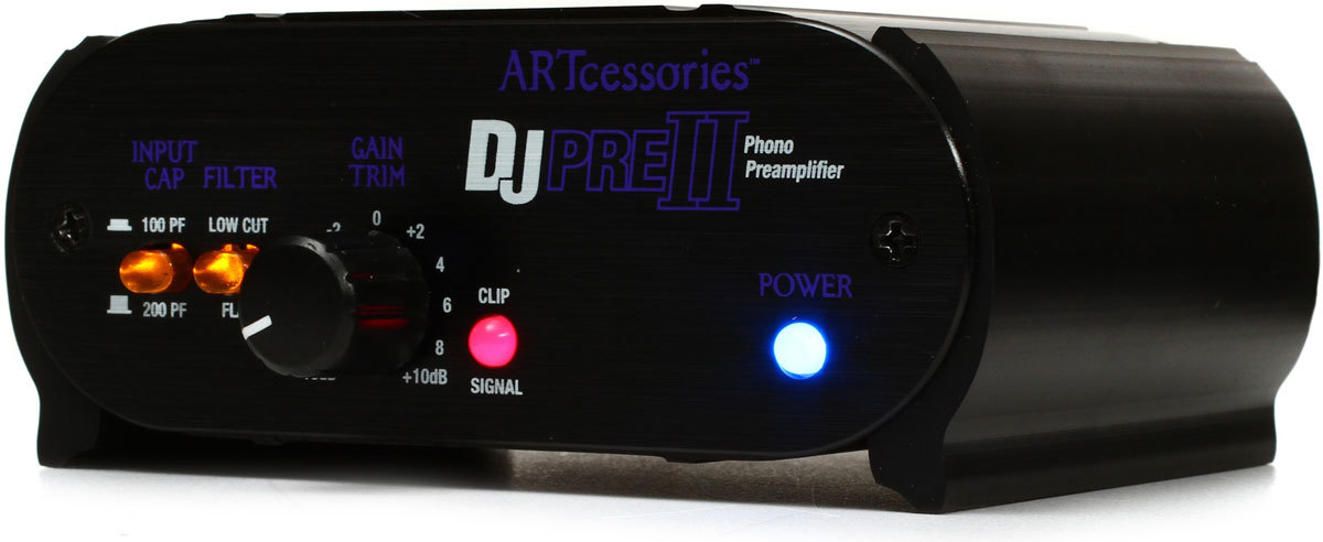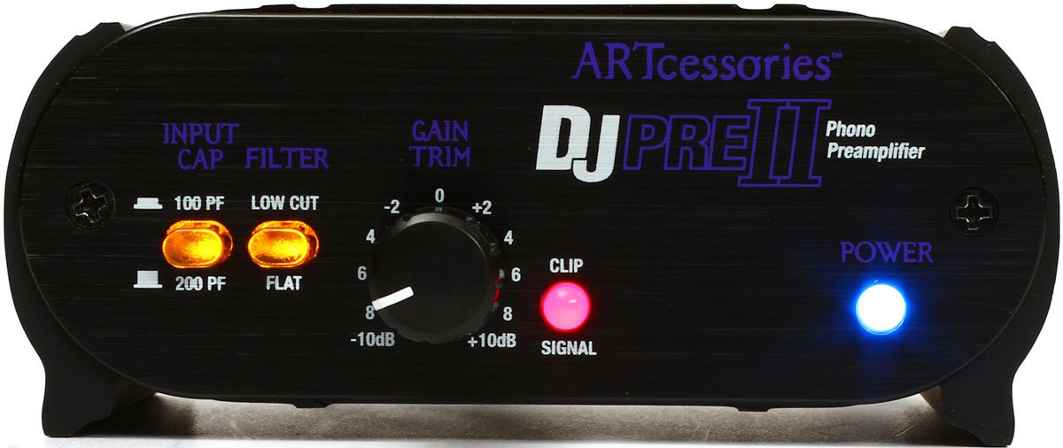 ART DJ Pre II - предусилитель-фонокорректор для виниловых проигрывателей, позволяет качественно преобразовывать сигнал с выхода звукоснимателя во входной сигнал аудио интерфейса, диапазон частот 10-50000 Гц, отношение сигнал/шум >90 дБ, нелинейные искажения 0,01%