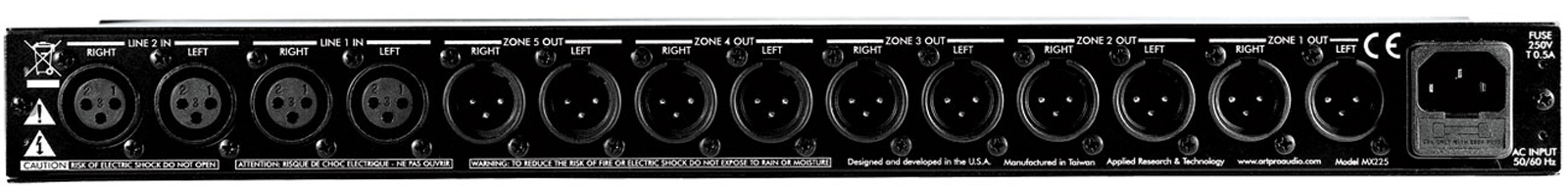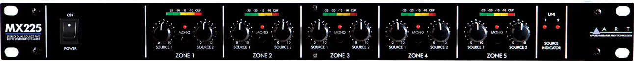 MX225 предназначен для дистанционного контроля громкости нескольких усилителей или мощных динамиков в распределенной аудио системе. Два стерео источника доступны для всех пяти зон. Каждая пара источника входного сигнала регулятора разделена на балансные левую и правую составляющие линейного сигнала.