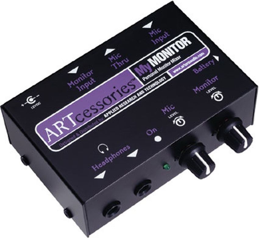 Несмотря на свои скромные габариты и довольное узкую область применения - прибор может быть очень полезен и порой даже просто необходим. MyMonitor представляет из себя персональную систему мониторинга сигнала - в основном для вокалистов. На борту - микрофонный вход, сквозной выход, а также вход для добавления в мониторный сигнал основного микса. Уровни входных и выходных сигналов можно регулировать. При этом, можно одновременно задействовать две пары наушников. В целом, прибор может быть очень удобен в концертных условиях, когда отсутствует полноценная мониторинговая линия.
