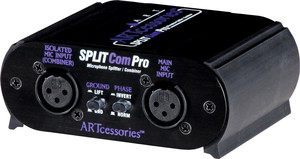 ProSplit позволяет создать один директ-выход и один изолированный выход трансформатора от единственного микрофона. С помощью приложений директ-выход может быть подан на главный микшер, а второй изолированный выходной сигнал будет послан на монитор или записывающий микшер. Директ-выход пропускает фантомное питание главного микшера на микрофон для использования с конденсаторными микрофонами.