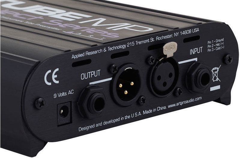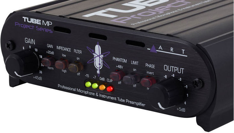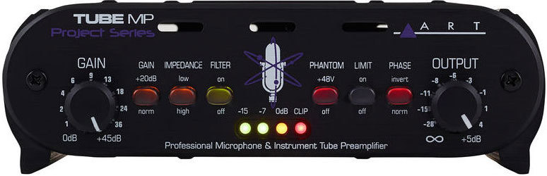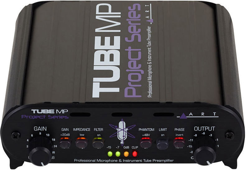 ART TUBE MP Project Series, малошумящий микрофонный преамп, имеет широкую плоскую АЧХ и оперирует довольно большим диапазоном входных уровней с минимальным вмешательством в окраску звучания. При подключении источника сигнала к 1/4″ инструментальному входу микрофонный вход отключается, что положительно сказывается на качестве звучания. Лампа 12AX7A используется для добавления в звучание «ламповой» теплоты. Выносной блок питания обеспечивает отсутствие в полезном сигнале шумов и сетевых наводок.