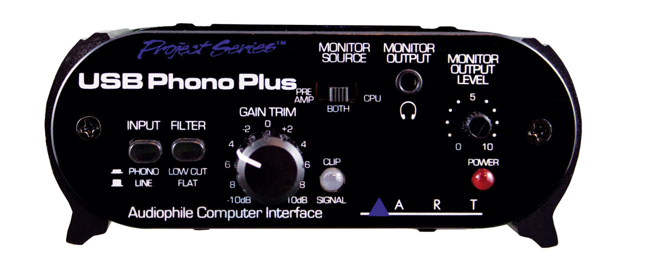 USB Phono Plus — новый аудио-интерфейс от компании ART — отличное решение для передачи высококачественного сигнала между компьютером и разнообразными аналоговыми и цифровыми источниками. Чувствительность аналоговых входов переключается между «Line» и «Phono» уровнями, фильтр НЧ эффективно подавляет низкочастотные шумы без ущерба для полезного аудиосигнала. Плавная регулировка входного уровня и индикация наличия сигнала и перегрузки позволяет оптимизировать работу A/D конвертера при работе с различными источниками. Мониторинг осуществляется через находящийся на передней панели разъем мини-jack, конструктивно объединенный с USB, или через оптический выход на задней панели прибора. Выходные линейные разъемы (RCA) также соединены с входным преампом для контроля.