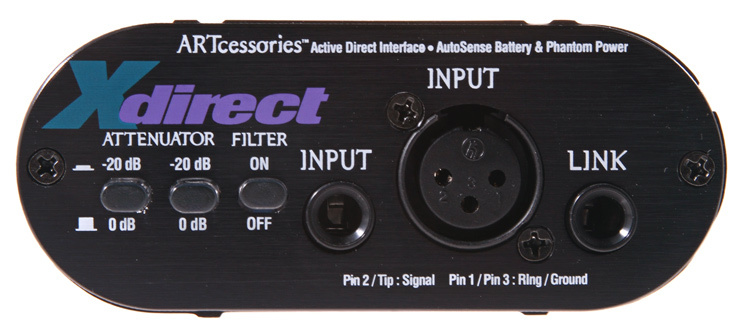 Переключатель Ground Lift позволяет разделить входные и выходные сигналы, при необходимости, изолировать обе системы, снижая при этом уровень шума. В ART XDirect добавлен переключаемый фильтр низких частот, который срезает помехи очень высокой частоты.