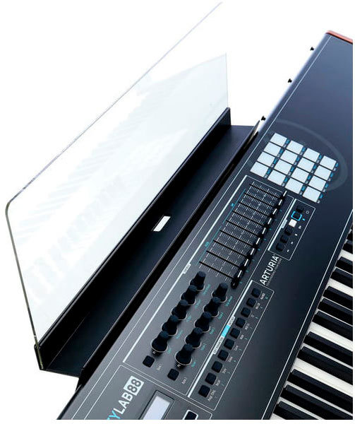 Однако, Arturia KeyLab 88 также выступает в качестве универсального MIDI контроллера, совместимого с любым программным и аппаратным обеспечением сторонних производителей. Управляющие элементы могут быть настроены для практически любой формы музыкальной технологии с использованием LED экрана или прилагаемого программного обеспечения MIDI-Control Center.