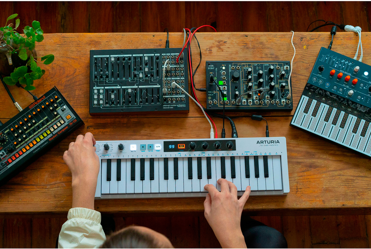 Для тех, кто работает с аналоговыми синтезаторами, предусмотрены выходы CV/Gate и разъемы Sync I/O на 3,5 мм. В комплекте с клавиатурой поставляется дистрибутив Ableton Live Lite.