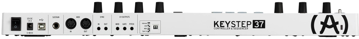Arturia KeyStep 37 - 37 клавишная динамическая MIDI мини-клавиатура с velocity&aftertouch, арпеджиатор, 8 голосный шаговый секвенсор, управление скоростью и Tap Tempo, кнопки Sustain Hold, Shift, разъемы MIDI In Out, Sync In Out, CV Gate Outs, Sustain In, DC In