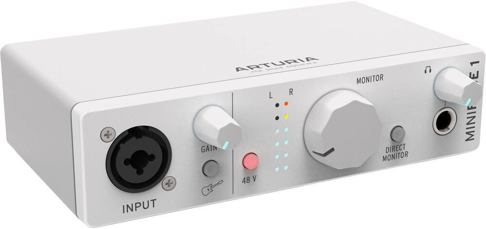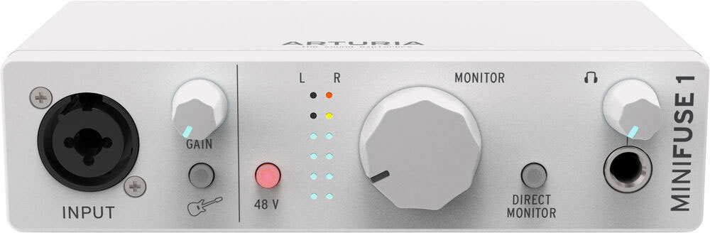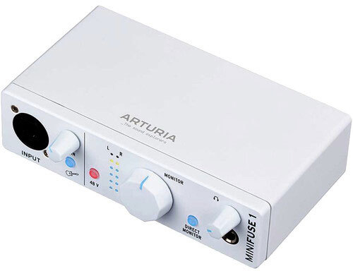 Белая Arturia MiniFuse 1, портативный аудиоинтерфейс 1x2 USB Type-C, сочетающий в себе великолепный звук, простоту эксплуатации и надежный пакет программного обеспечения, поможет быстро воплотить ваши творческие идеи в контент, который услышит весь мир. Благодаря одному малошумящему микрофонному/линейному/инструментальному предусилителю MiniFuse 1 помогает певцам, гитаристам, подкастерам и онлайн-творцам получать чистые и качественные записи. Он также оснащен виртуальным каналом обратной петли, позволяющим легко захватывать компьютерный звук наряду с живым входом, например, голос за кадром или гитарный проигрыш.