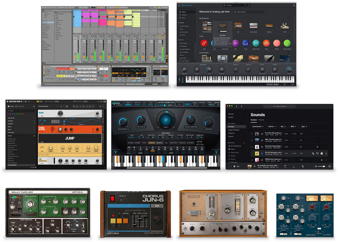 - В комплект поставки входят внешний блок питания, кабель USB (тип C - A), пакет программного обеспечения (загрузка): Ableton Live Lite, Analog Lab Intro, Pre 1973, Rev PLATE-140, Delay TAPE-201, Chorus JUN-6 и NI Guitar Rig LE плюс дополнительная бесплатная 3-месячная подписка на Auto-Tune Unlimited и Splice Creator Plan.