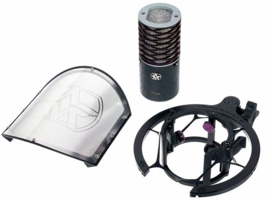 Aston Microphones ORIGIN BLACK BUNDLE Студийный кардиоидный конденсаторный микрофон в черном корпусе с держателем-пауком и поп-фильтром, 10 дБ аттенюатор, 20 ГЦ - 20 кГц