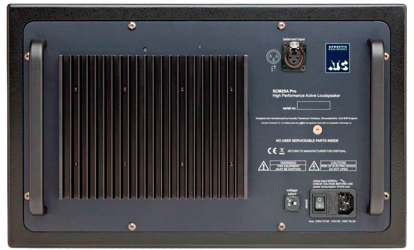Мониторы оснащены 3-полосными усилителями класса A/B, выдающими суммарно 235 Вт каждый. 150 Вт мощности – на НЧ-динамик, 60 В – на СЧ-динамик и 25 Вт – на ВЧ-динамик. Вход выполнен на разъеме XLR и находится на задней панели. Возможна установка мониторов в 19-дюймовую рэковую стойку.
