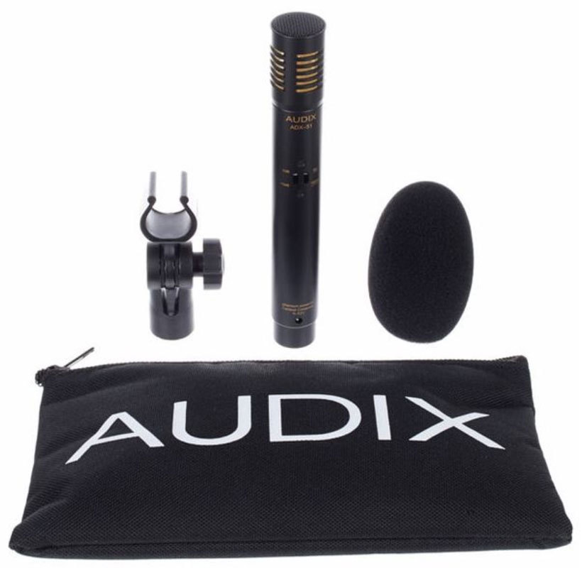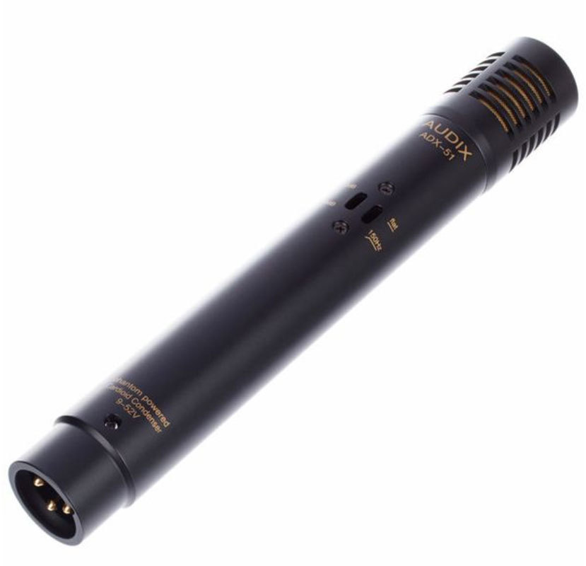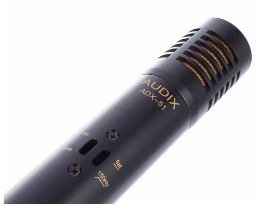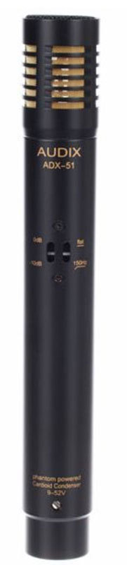 Audix ADX51 конденсаторный кардиоидный микрофон ''карандаш'' с переключаемым фильтром частот ниже 150 Гц и 10 dB аттенюатором, 40 Гц - 18 кГц, идеален в качестве оверхеда, для озвучивания тарелок, хай хэта. В комплекте держатель, ветрозащита, сумка.