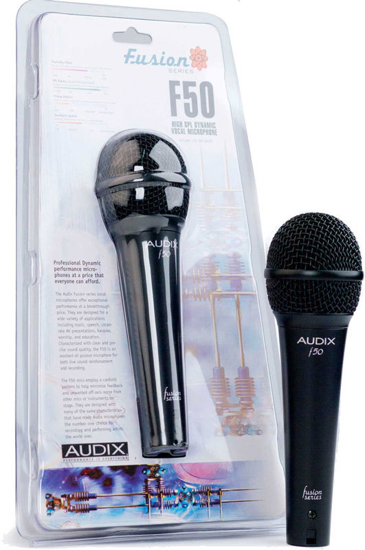 AUDIX F50 - Динамический кардиоидный микрофон, 50 Гц - 16 кГц. Многоцелевой вокальный и инструментальный микрофон в долговечном корпусе из цинкового сплава, слегка приподнятая середина для выделения вокала. В блистере.