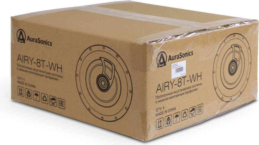 AuraSonics AIRY-8T-WH потолочная акустическая система 8'' низкопрофильная 117мм, ВЧ 1'' шёлк, 50Вт-8Ом, 100В-2,5/5/10/20Вт, 98-20KHz, монтажное отверстие 250мм