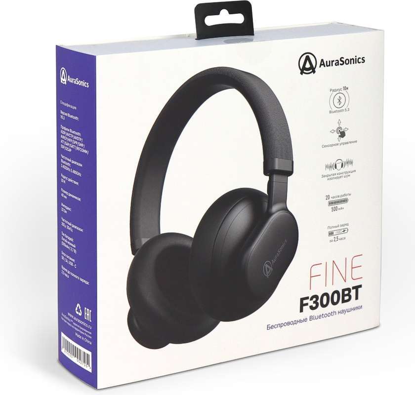 AuraSonics Fine F300BT, наушники c Bluetooth V5.3, полноразмерные, поворотные чаши, сенсорное управление, функции гарнитуры, 20 часов работы, 20Гц-20кГц, радиус 10 м, USB-C