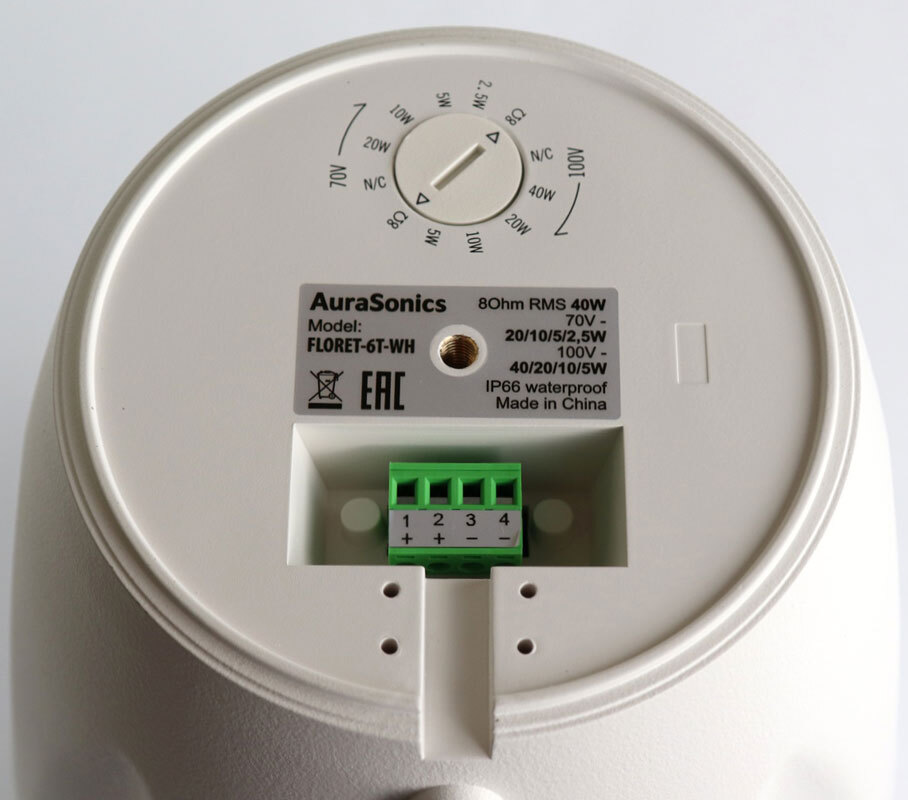 В качестве усилителей могут использоваться обычные модели, работающие на низкоомную нагрузку, но если необходимо установить большое количество колонок, то можно воспользоваться трансляционными усилителями, работающими с линиями 70 или 100 В. Для выбора режима нагрузки под верхним колпаком колонок расположен вращаемый переключатель.