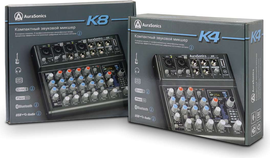 Аналоговые микшеры AuraSonics K4 и K8 созданы для широкого круга применения. Это могут быть репетиции, звукозапись, выступления перед аудиторией, стримы, монтаж видео и просто воспроизведение музыки.