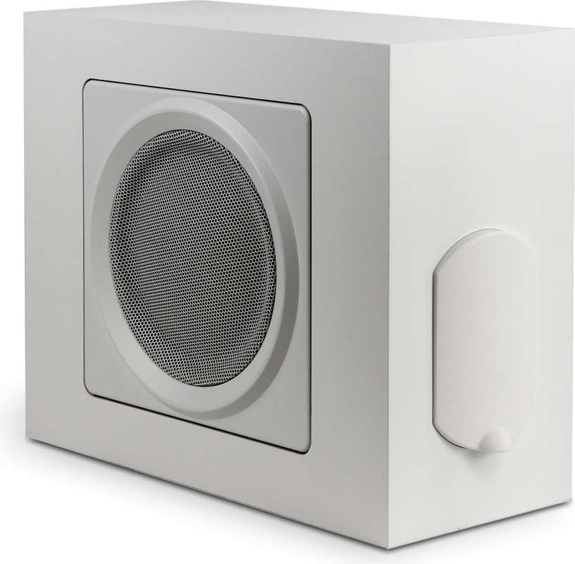 AuraSonics QUADRATE SUB-WH компактный настенный сабвуфер 6,5'', 70/100B-80/40/20/10 Вт, 80Вт/8Ом, 60-350Гц, подключение сателллитов, белый