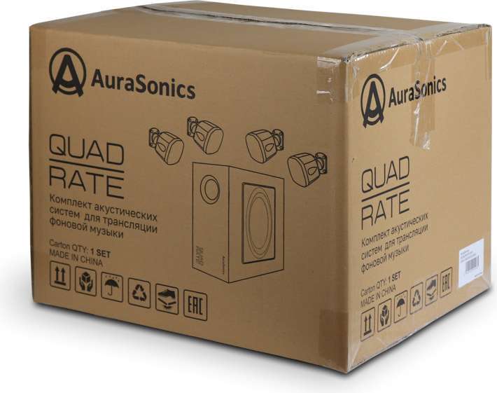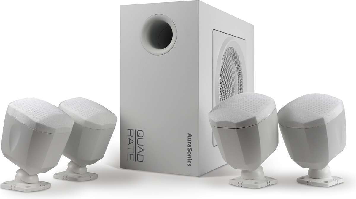AuraSonics QUADRATE представляет собой набор из четырёх компактных акустических систем-сателлитов (далее AC) и сабвуфера. Комплект предназначен для инсталляции в небольших помещениях до 50 м2 и позволяет обеспечить комфортное равномерное звучание музыкального сопровождения, транслируемого в фоновом режиме (не выше громкости речи). Сочетание распределённых по помещению сателлитов и сабвуфера создаёт объёмное звучание на средних и высоких частотах, поддерживаемое глубокими низкими басами.