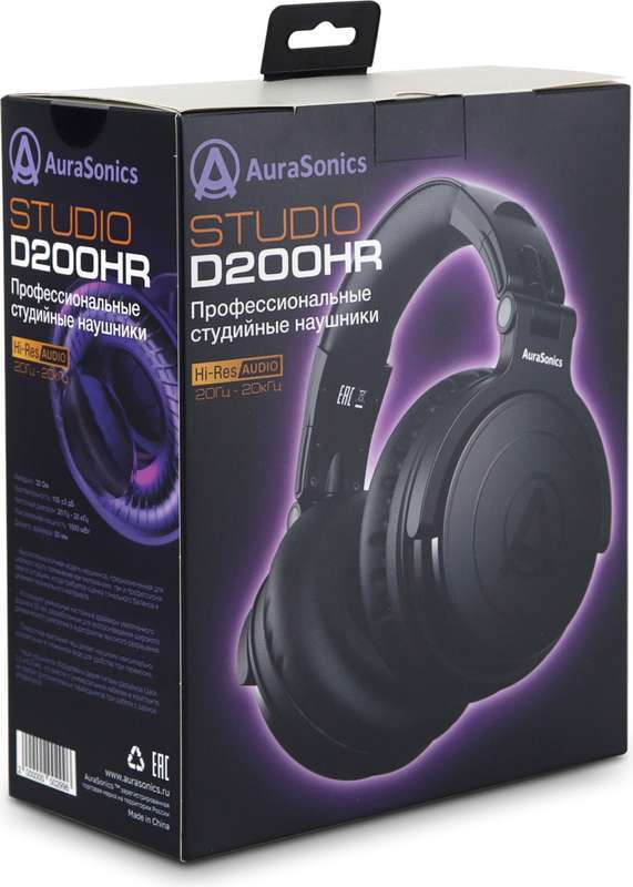 AuraSonics Studio D200HR наушники проводные, закрытые, драйверы 50мм, 20-20 000 Гц, складная конструкция, импеданс 32Ом, чувствительность 105 дБ, мощность 1600 мВт, 2 сменных кабеля, сменные амбушюры