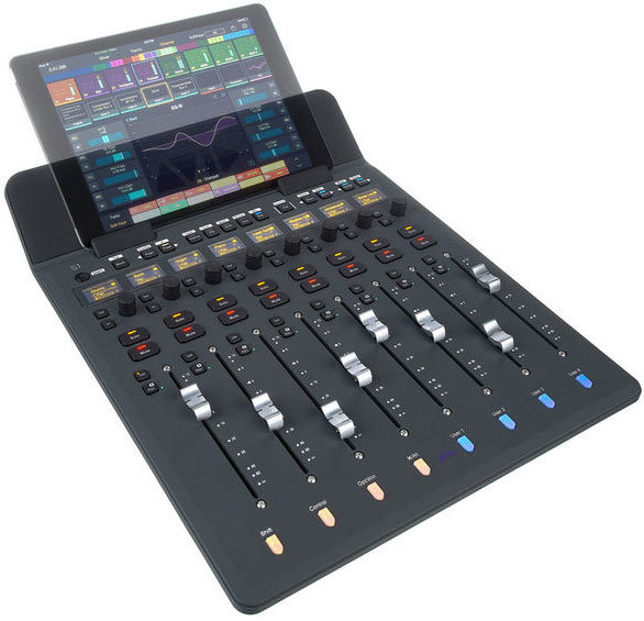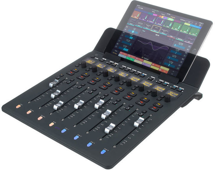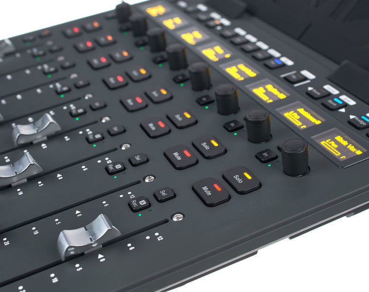 - Дисплеи: Восемь OLED-дисплеев высокого разрешения, а также несколько LED-индикаторов состояния и разноцветных кнопок треков; измерение каналов, мониторинг, обработка, отслеживание состояния, режимы автоматизации и другие виды, предоставляемые Pro Tools | Control на iPad