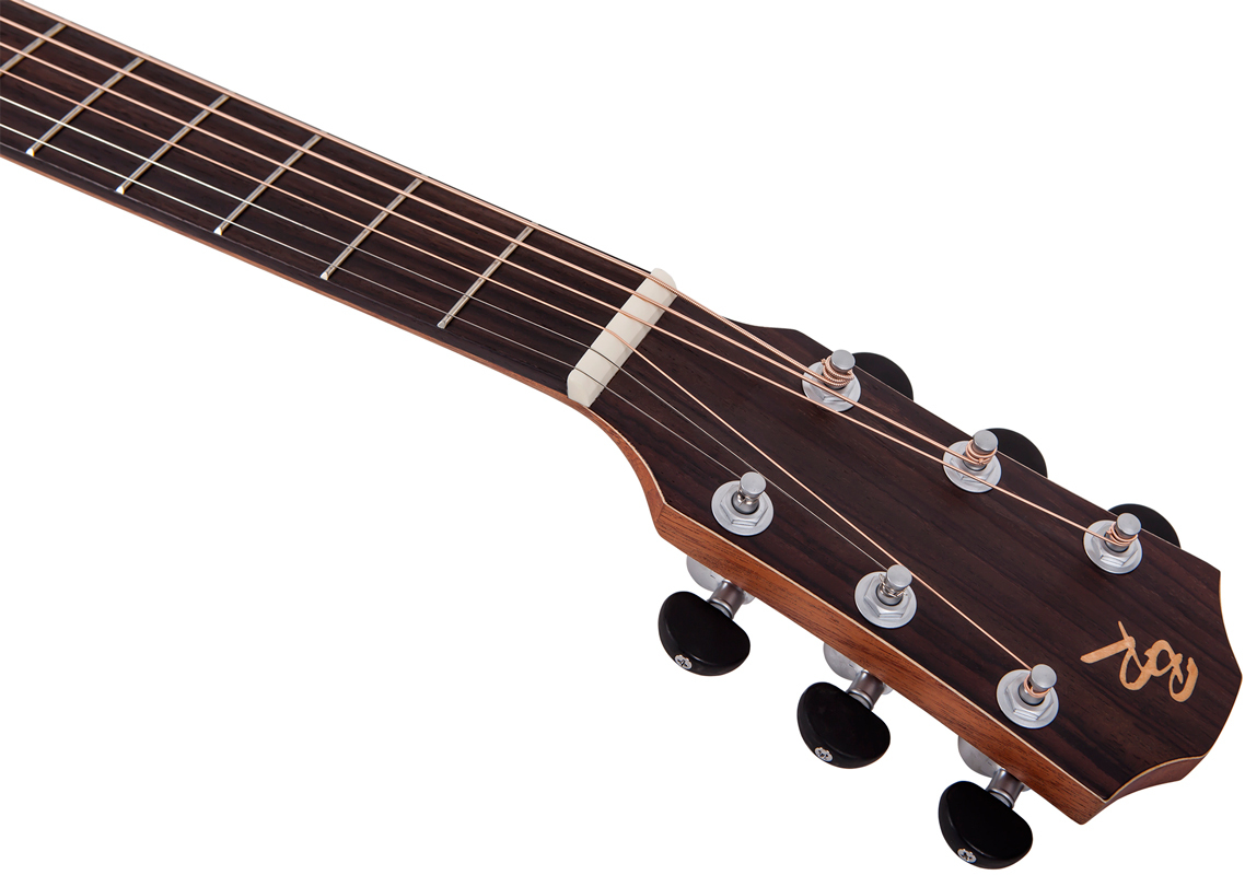 Верхняя дека BATON ROUGE AR101S/GACE выполнена из ели, нижняя же дека и обечайки – из массива палисандра. Гриф сделан из махагони, у него накладка из палисандра. Натурального цвета корпус с открытыми порами имеет кленовый кант, у него матовая отделка. Колки выполнены литыми, матовыми и хромированными с черными лепестками. Длина мензуры стандартна и составляет 630 мм, при этом верхний порожек – 43 мм.