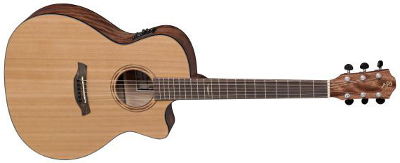 BATON ROUGE AR31C/ACE – электроакустическая гитара с катавеем серии Auditorium. Верхняя дека выполнена в корпусе из цельного канадского кедра, задняя дека и обечайки – из пламенного окуме. Гриф изготовлен из обычного красного дерева, накладка на гриф и сам бридж – из овангкола. У гитары 20 ладов, а верхний и нижний порожек (46 мм) выполнены из материала Nubone: упрощенная разновидность материала TUSQ, которая лучше гасит вибрацию струн, лучше передает частоты и гармоники, увеличивает объем звука и обогащает тон.