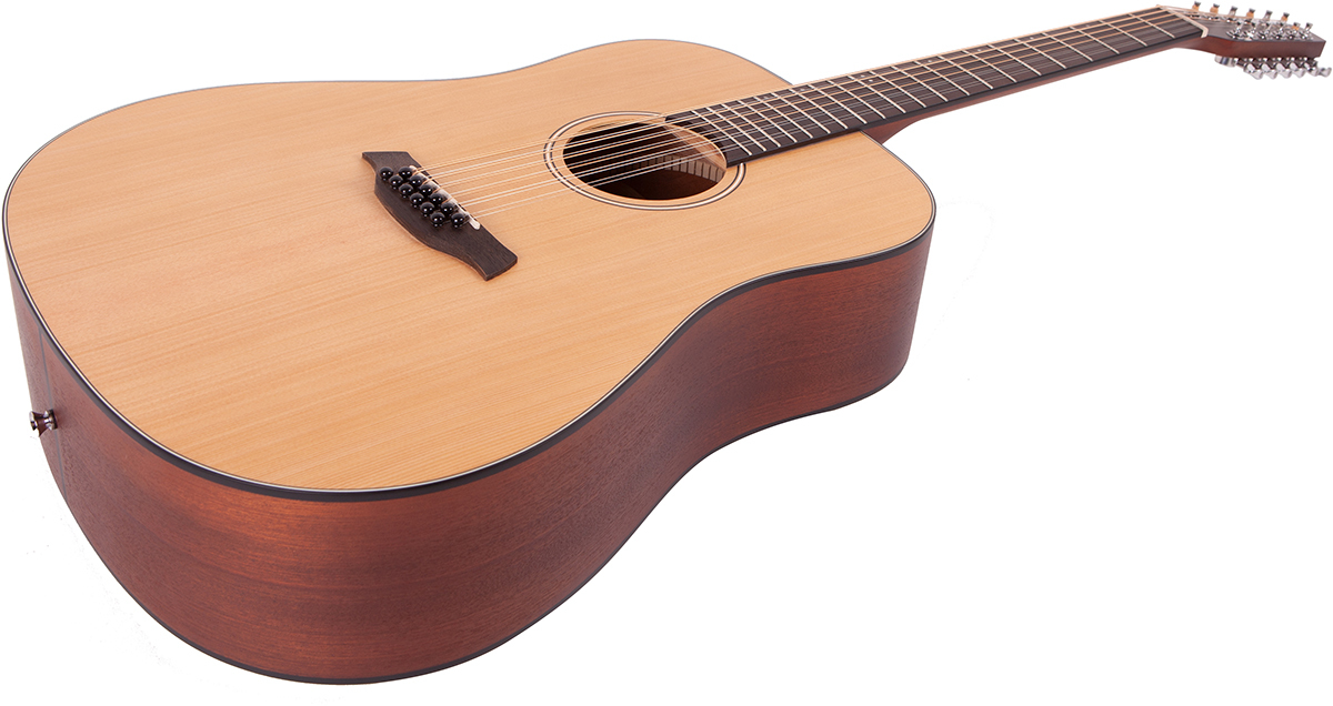BATON ROUGE L1LS/D-12 – 12-ти струнная акустическая гитара без выреза в корпусе типа дредноут, благодаря чему инструмент имеет широкий динамический диапазон, звучит громко и объемно. Верхняя дека выполнена в корпусе из ели, задняя дека и обечайки – из красного дерева. Данное сочетание материалов делает тембр гитары ярким и звонким. Гриф также сделан из красного дерева, накладка на гриф и сам бридж – из овангкола. У гитары 21 лад, а верхний и нижний порожек (48 мм) выполнены из материала Nubone: упрощенная разновидность материала TUSQ, которая лучше гасит вибрацию струн, лучше передает частоты и гармоники, увеличивает объем звука и обогащает тон.