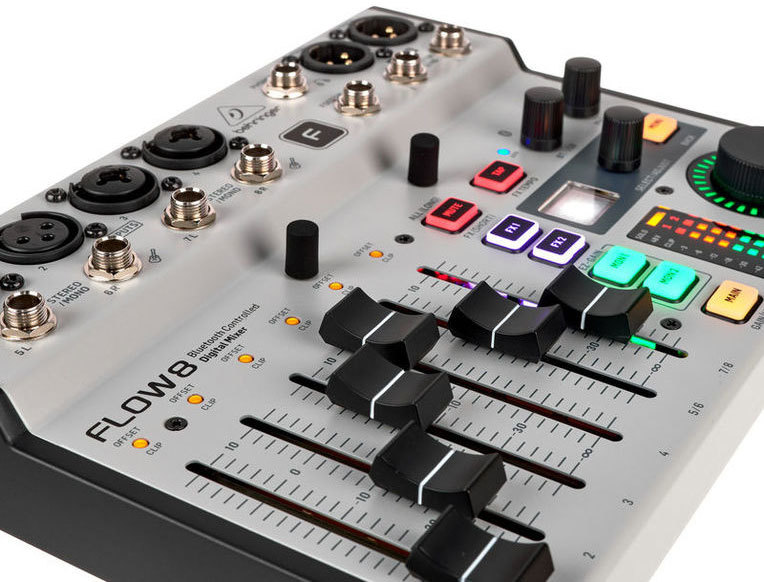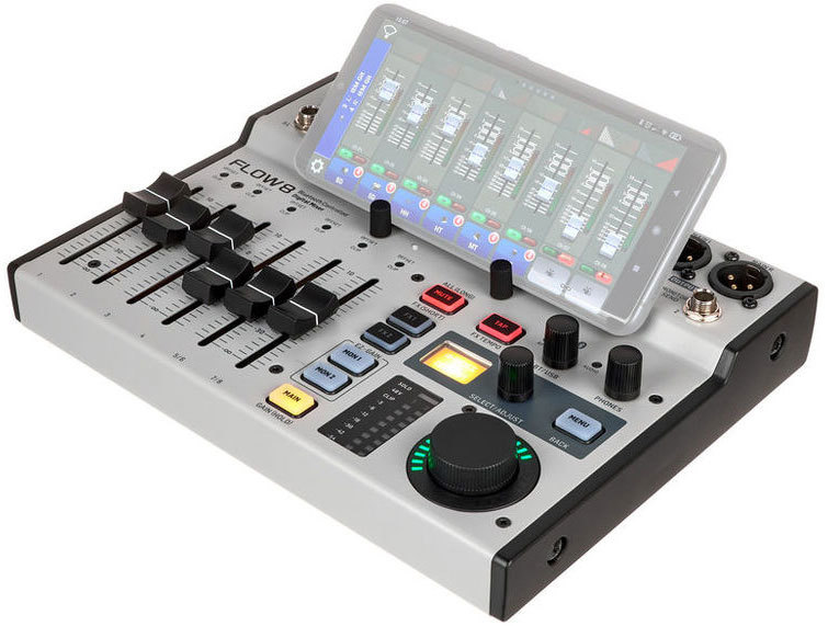 Мониторные и мастер шины оснащены 9-полосным эквалайзером и лимитером. Приложение FLOW MIX для управления микшером использует Bluetooth и работает с любыми мобильными устройствами на базе iOS и Android.