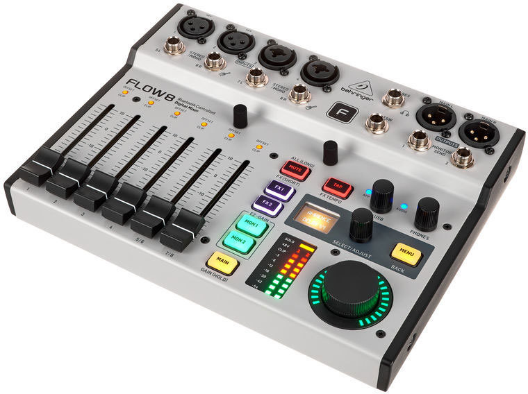 BEHRINGER FLOW 8 - цифровой микшерный пульт, 4 TRS входа, 2 XLR входа, 2 XLR/TRS входа, USB порт