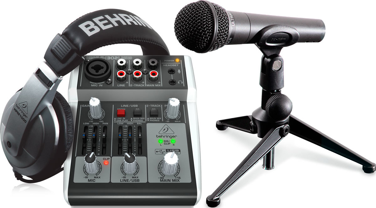 Behringer Podcastudio 2 USB, набор для записи: пульт 302USB, микрофон XM8500, наушники HPS 1000