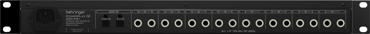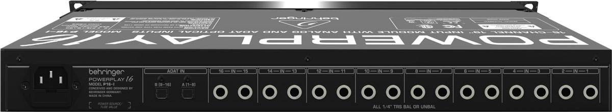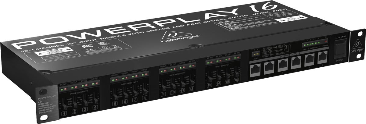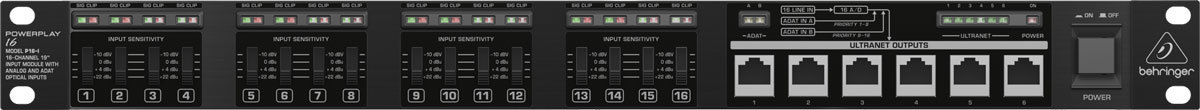 BEHRINGER P16-I POWERPLAY - Система мониторинга POWERPLAY. Входной модуль на 16 аналоговых/ADAT каналов. Используется совместно с микшером P16-M. Монтаж в рэковую стойку. Высота: 1U.