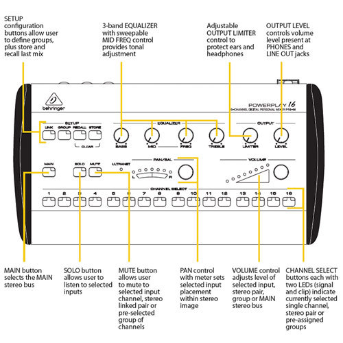 Микшер POWERPLAY P16 передаёт полный контроль мониторинговой системы, в которой он находится – в руки музыкальных исполнителей, освобождая звукоинженера для уделения большего внимания созданию прекрасного концертного микса. Система POWERPLAY P16 это простой и доступный по цене способ контролировать постоянно меняющийся уровень громкости звука на сцене и предоставить музыкантам и вокалистам то, что они и на самом деле хотят – больше звука.