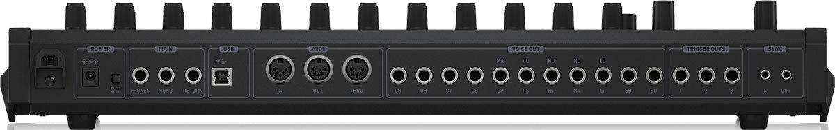 - Комплексный MIDI-вход/выход/Thru плюс USB для синхронизации и подключения к внешним устройствам.