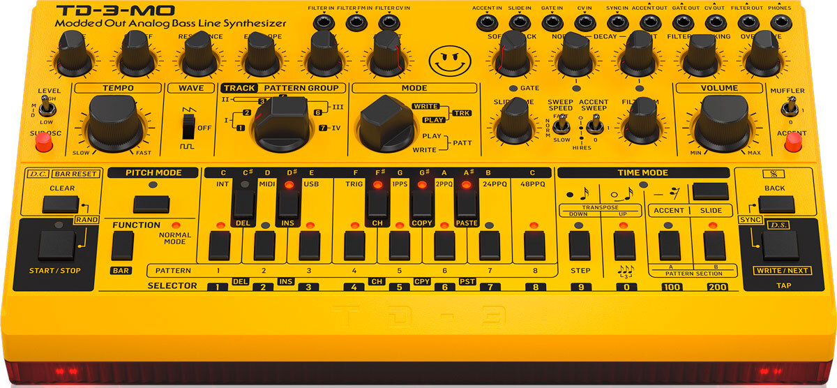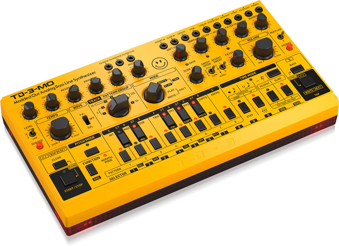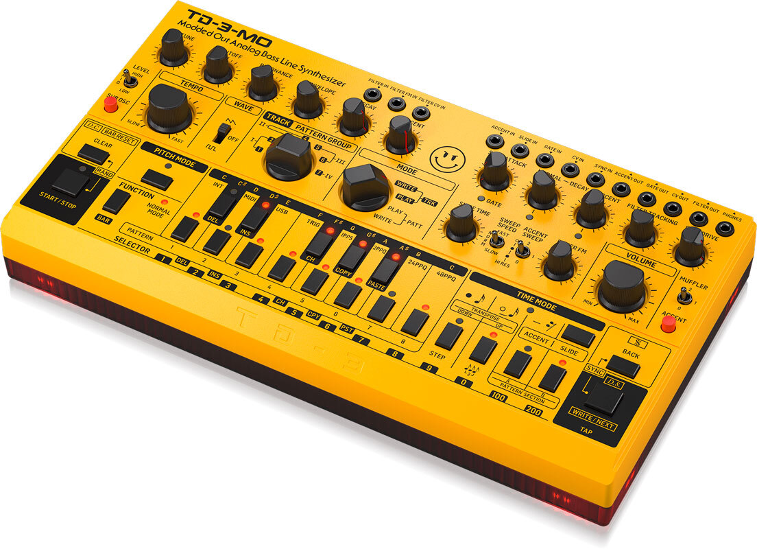 Behringer TD-3-MO-AM Аналоговый басовый синтезатор с 16-ступенчатым секвенсором и фильтрами VCO, VCF и VCA желтый