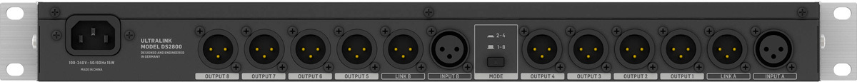 DS2800 имеет линейные XLR входы с ультра-низким уровнем шума, плюс выходные XLR разъемы Link для каскадирования нескольких подобных устройств. Все коннекторы входов и выходов имеют позолоченное покрытие для обеспечения максимальной целостности сигнала.