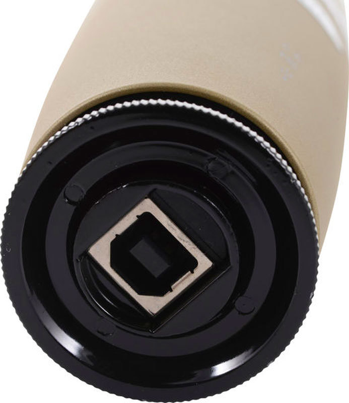 Студийный конденсаторный микрофон с кардиоидной характеристикой направленности, встроенным USB аудиоинтерфейсом, большой мембраной, высококачественным картртиджем, ровной амплитудно-частотной характеристикой и набором программного обеспечения.