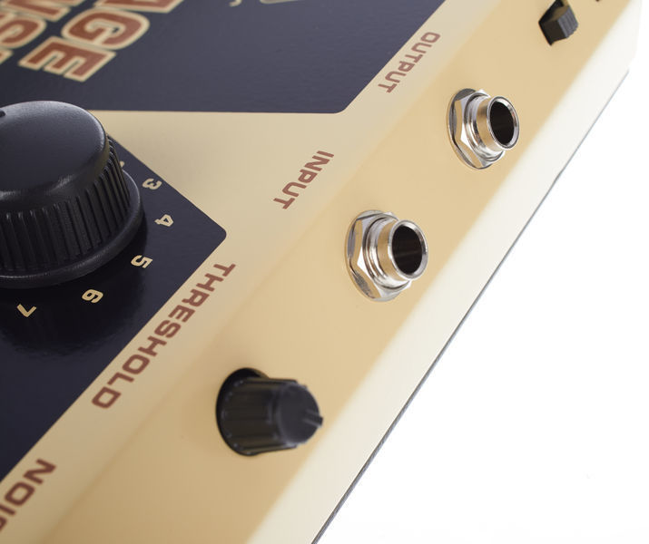 - Встроенный отключаемый нойз-гейт с установкой порога срабатывания устранит шум из сигнала