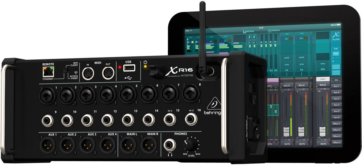 BEHRINGER XR16 цифровой рэковый микшер 16 каналов, WiFi модуль, USB интерфейс, управление с помощью планшетов iPad и Android.