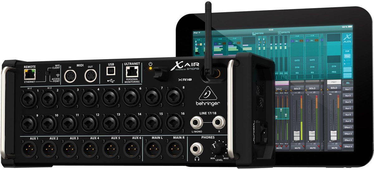 BEHRINGER XR18 цифровой рэковый микшер 18 каналов, WiFi модуль, USB интерфейс, управление с помощью планшетов iPad и Android.