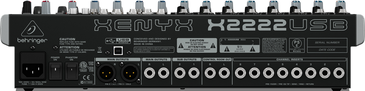 XENYX X 2222USB - Универсальный малошумящий микшерный пульт премиум-класса (8 моновходов с независимыми компрессорами, 4 стереовхода, 3 AUX-шины, 2 подгруппы, процессор эффектов, интегрированный USB-интерфейс, встроенный импульсный блок питания).