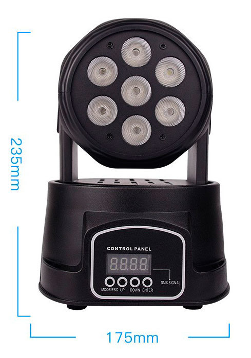 - 7 светодиодов (по 8Вт) 4-в-1 (красный, зеленый, синий, белый)