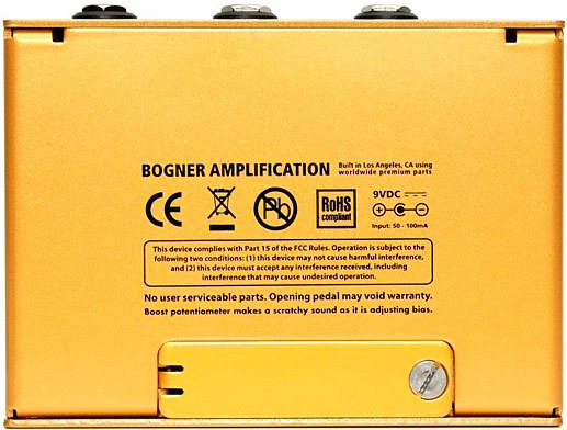 В этой педали Bogner использовал несколько дискретных каскадов усиления (Class A) без диодного отсечения или операционных усилителей. Этот по-настоящему революционный подход позволил поднять чистоту звучания и динамику на небывалую высоту. Питание La Grange осуществляется от обычной 9v батарейки, либо от источника питания 9vdc.